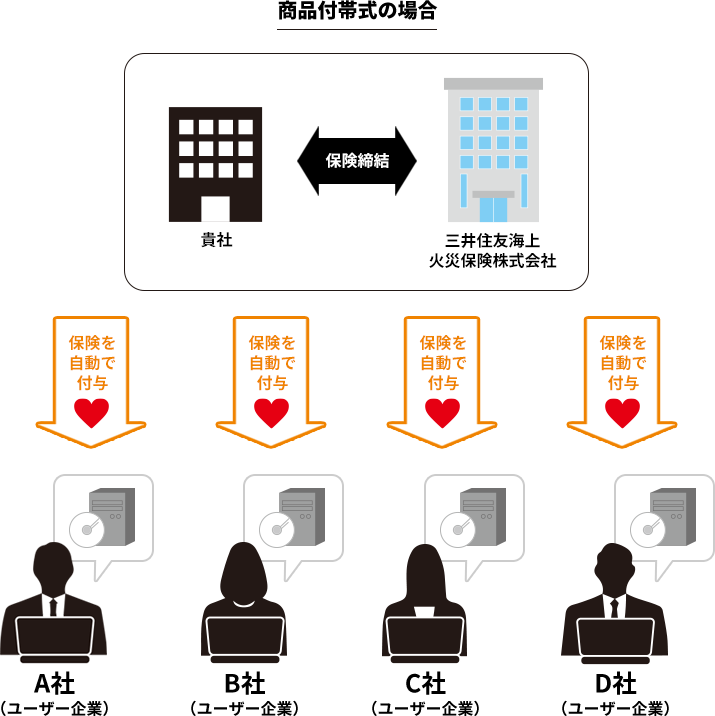 貴社が商品の販売促進のために購入者に無償で提供する保険契約方式です。